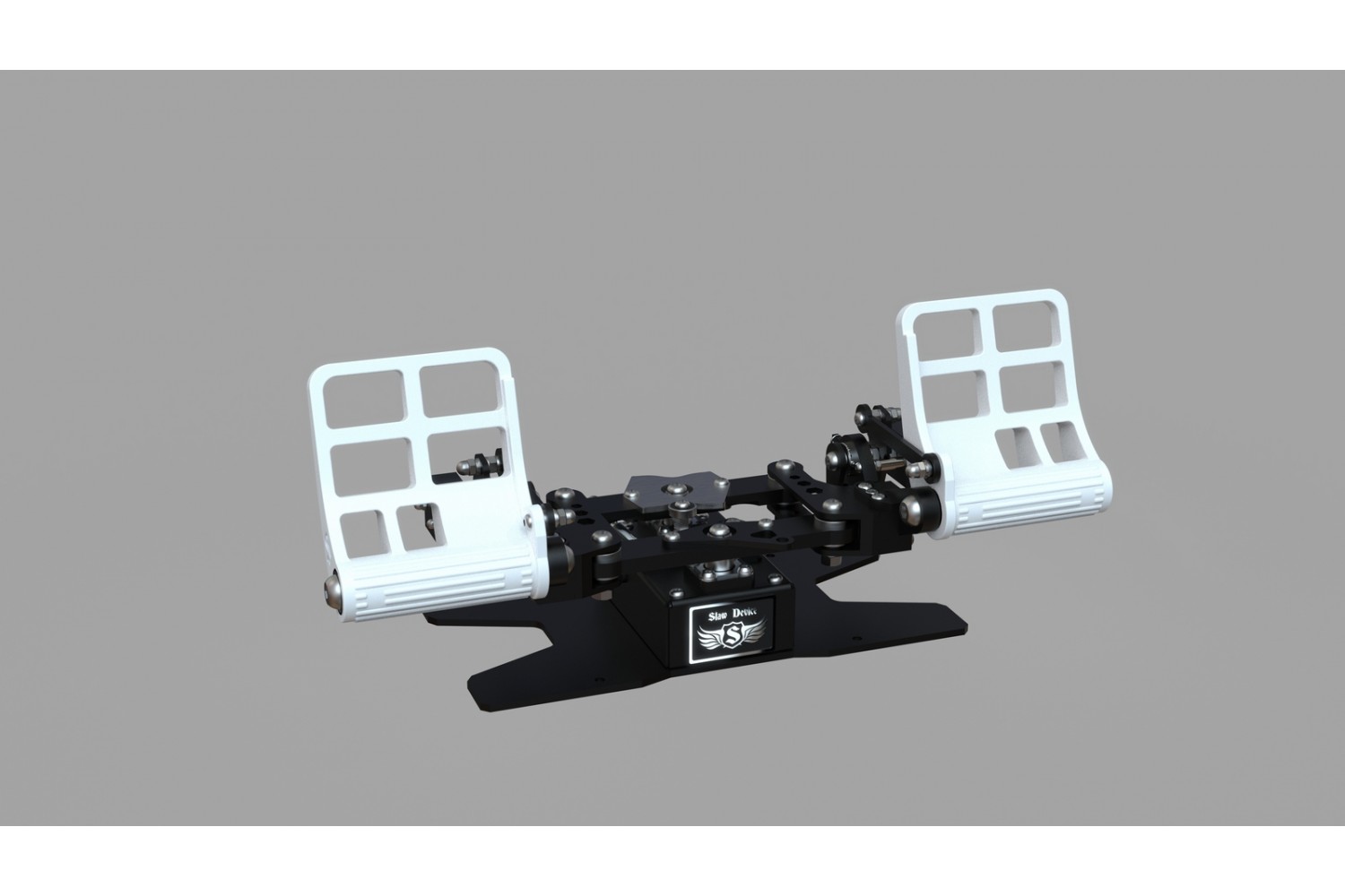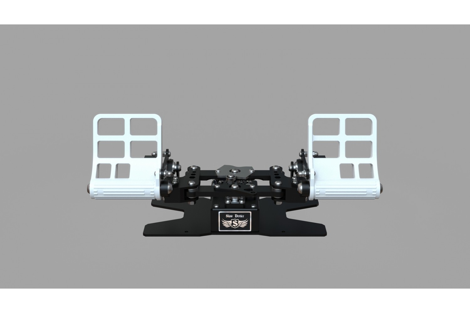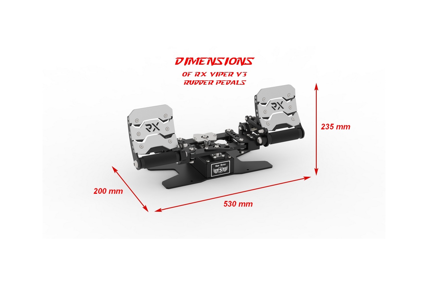 The RX Viper V3 rudder pedals are three-axis rudder pedals designed for use in all flight simulators for steering the rudder axis and two separate toe brakes.