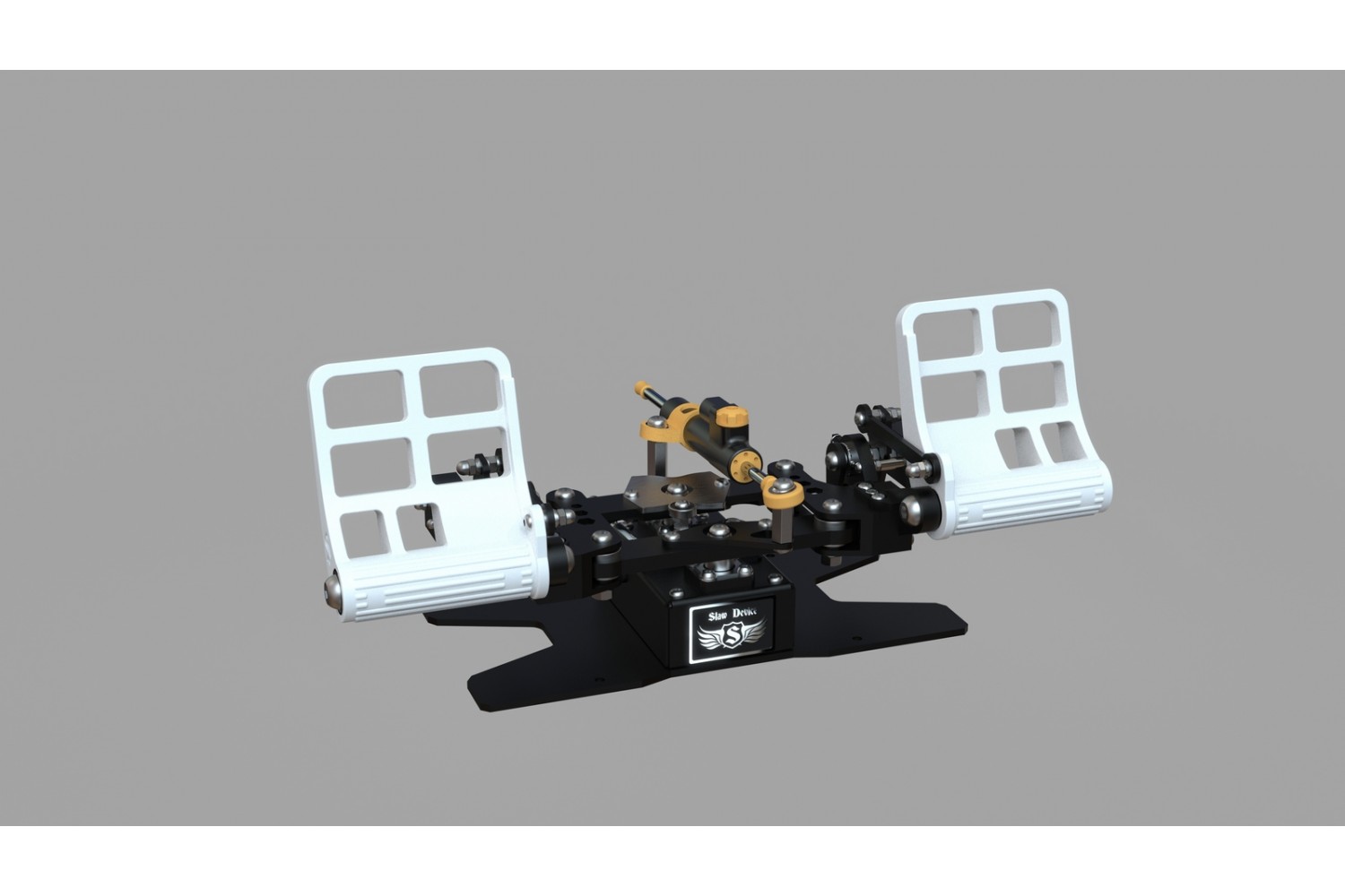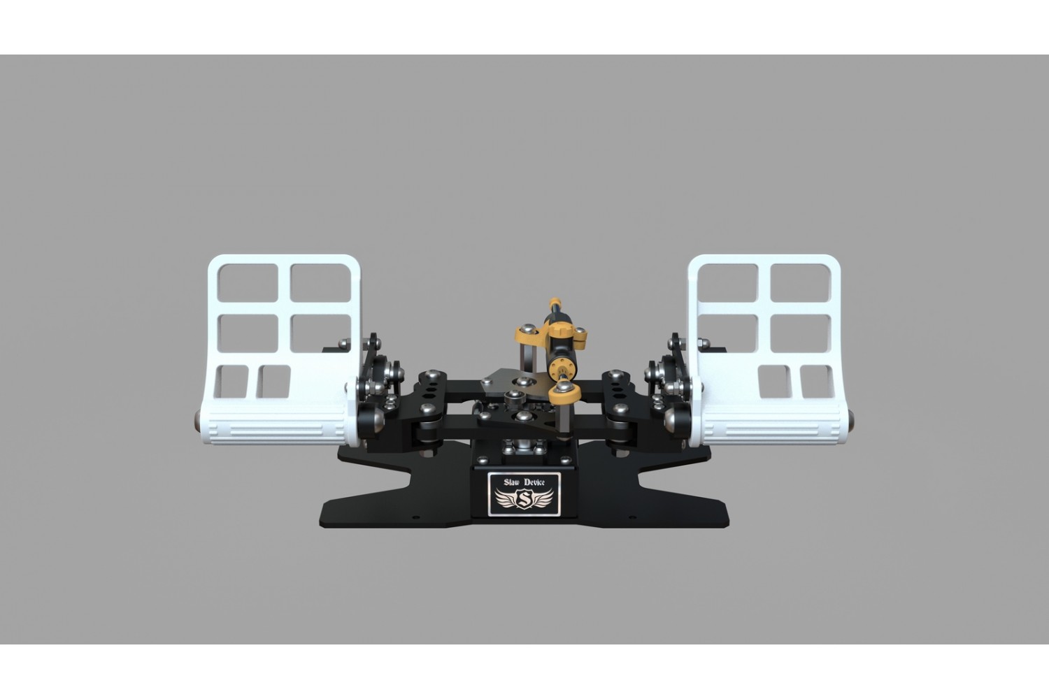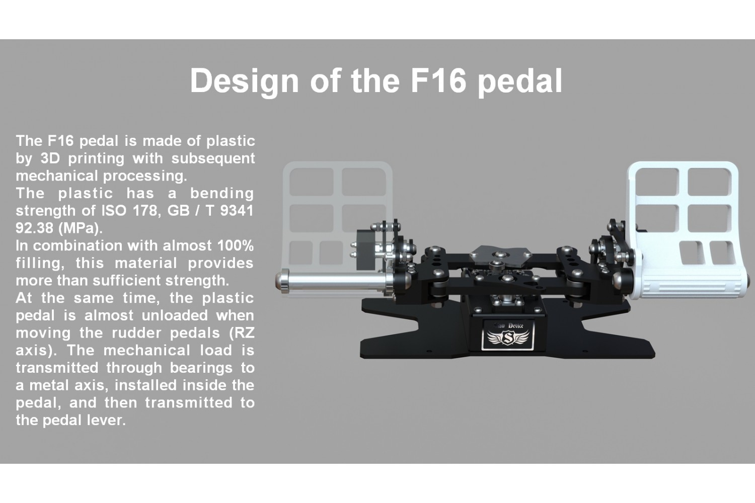 The RX Viper V3 rudder pedals are three-axis rudder pedals designed for use in all flight simulators for steering the rudder axis and two separate toe brakes.